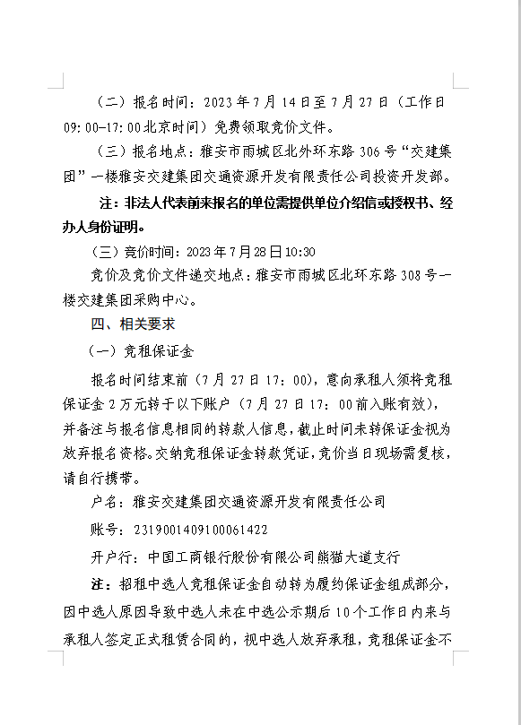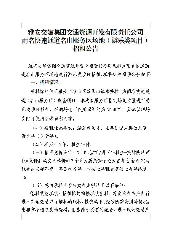 雅安交建集團交通資源開發(fā)有限責任公司雨名快速通道名山服務(wù)區(qū)場地(游樂類項目)招租公告附件