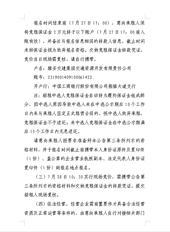 雅安交建集團(tuán)交通資源開(kāi)發(fā)有限責(zé)任公司雨名快速通道名山服務(wù)區(qū)場(chǎng)地(游樂(lè)類項(xiàng)目)招租公告