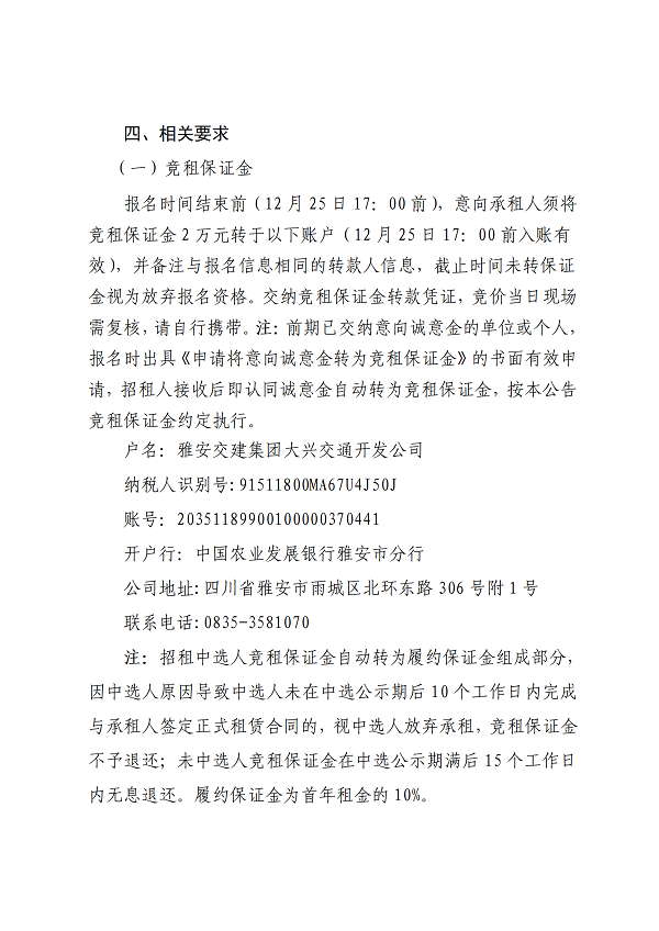 雅安交建集團大興交通開發(fā)公司大興南綜合交通樞紐(TOD)項目4#樓配套用房招租公告