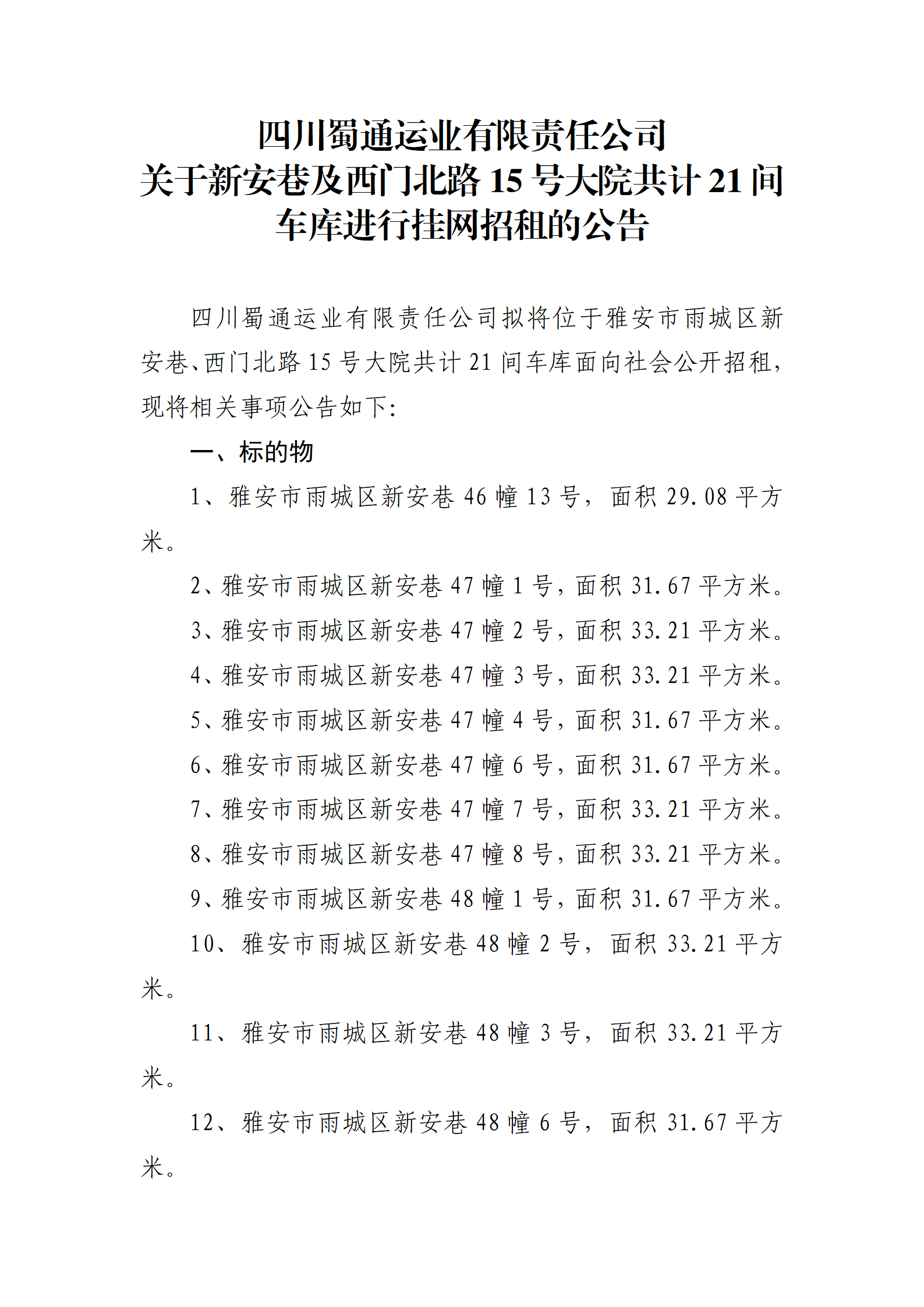 ËÄ´¨Êñͨß\˜I(y¨¨)ÓÐÏÞØŸ(z¨¦)Èι«Ë¾ êP(gu¨¡n)ÓÚа²Ïï¼°Î÷éT±±Â·15Ì–´óÔº¹²Ó‹21ég܇ŽìßMÐÐ’ì¾W(w¨£ng)ÕÐ×âµÄ¹«¸æ