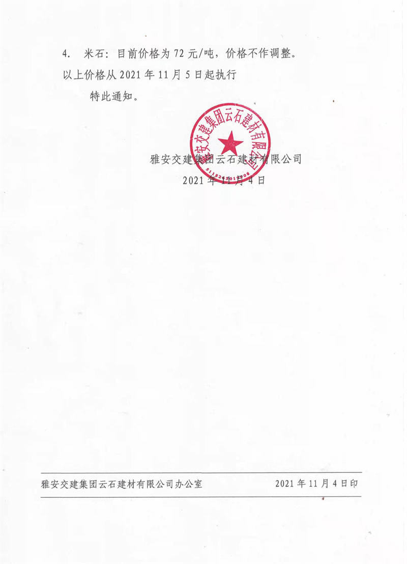ÑŰ²½»½¨¼¯ˆFÔÆÊ¯¹«Ë¾êP(gu¨¡n)ÓÚÕ{(di¨¤o)Õû³ÉÆ·ÁÏäNÊÛƒr¸ñµÄ֪ͨ£¨2021.11.4£©