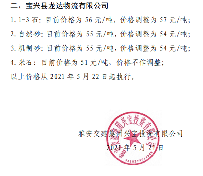 ÑŰ²½»½¨¼¯ˆF(tu¨¢n)ÔÆÊ¯¹«Ë¾É°Ê¯¹ÇÁÏäNÊÛƒr(ji¨¤)¸ñÇé›r±í£¨2021.5.14£©