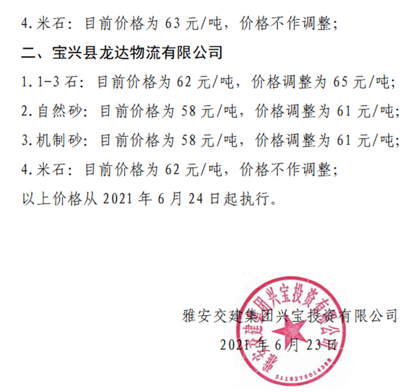 ÑŰ²½»½¨¼¯ˆF(tu¨¢n)ÔÆÊ¯¹«Ë¾É°Ê¯¹ÇÁÏäNÊÛƒr(ji¨¤)¸ñÇé›r±í£¨2021.6.20£©