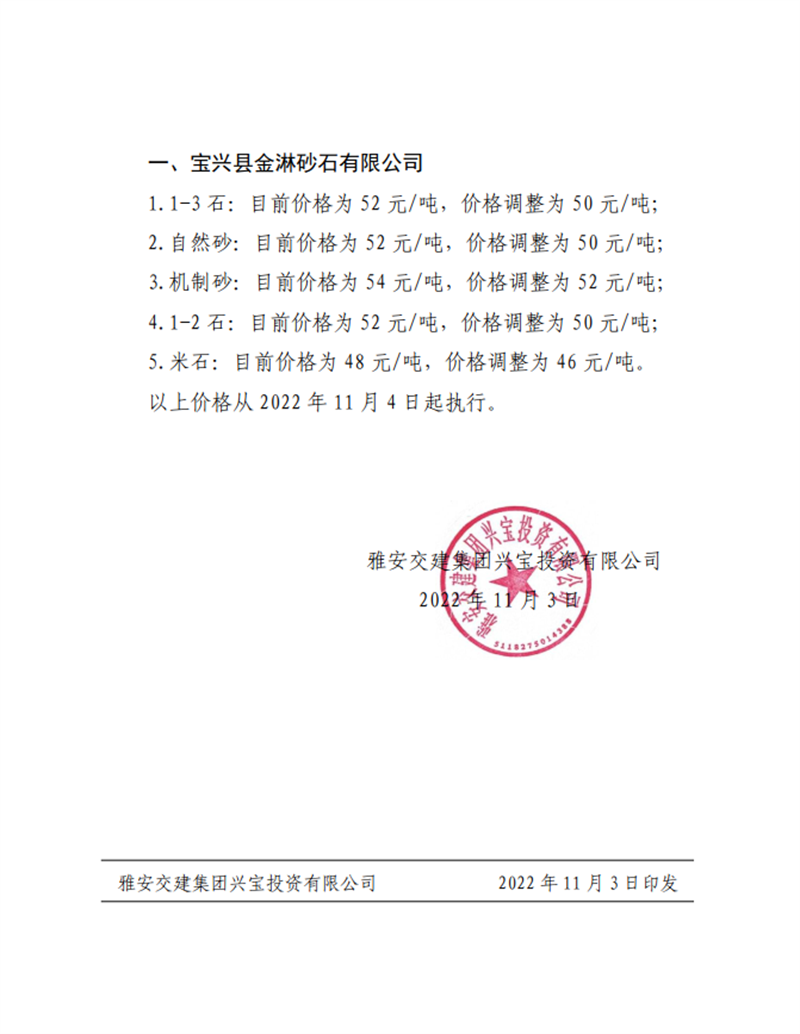 ÑŽ»½¨ÅdŒš¡²2022¡³55Ì–(h¨¤o) êP(gu¨¡n)ÓÚÕ{(di¨¤o)Õûɰʯ³ÉÆ·ÁÏäNÊÛƒr(ji¨¤)¸ñµÄ֪ͨ-11.5