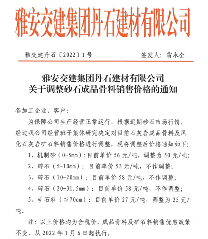 ÑŰ²½»½¨¼¯ˆF(tu¨¢n)µ¤Ê¯¹«Ë¾êP(gu¨¡n)ÓÚÕ{(di¨¤o)Õûɰʯ³ÉÆ·¹ÇÁÏäNÊÛƒr¸ñµÄ֪ͨ£¨2022.1.5£©