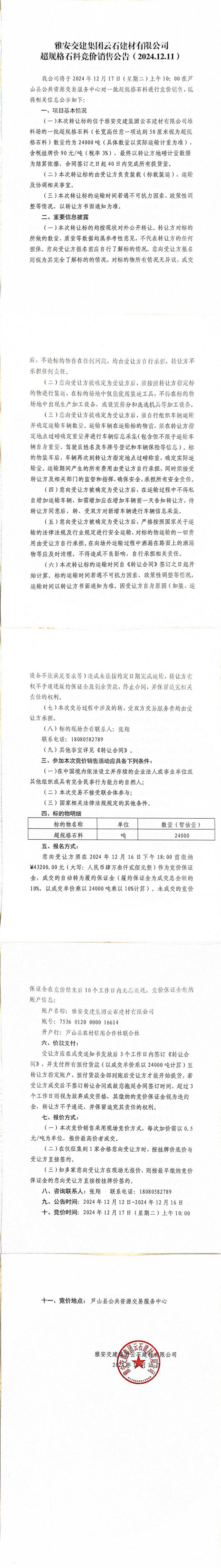 雅交建云石建材有限公司超規(guī)格石料競價(jià)銷售公告(2024.12.11)