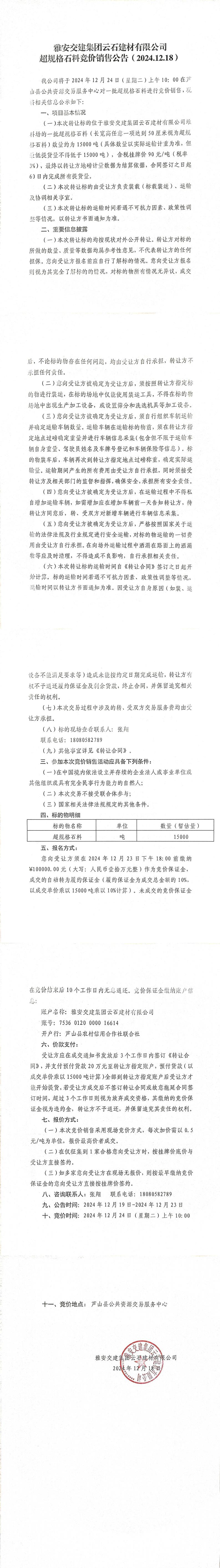雅交建云石建材有限公司超規(guī)格石料競(jìng)價(jià)銷(xiāo)售公告(2024.12.11)